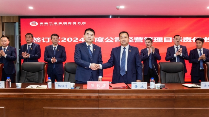 黨委書記、董事長(zhǎng)胥立與黨委副書記、總經(jīng)理?xiàng)罱胶炗啞?024年度經(jīng)營管理目標(biāo)責(zé)任書》。